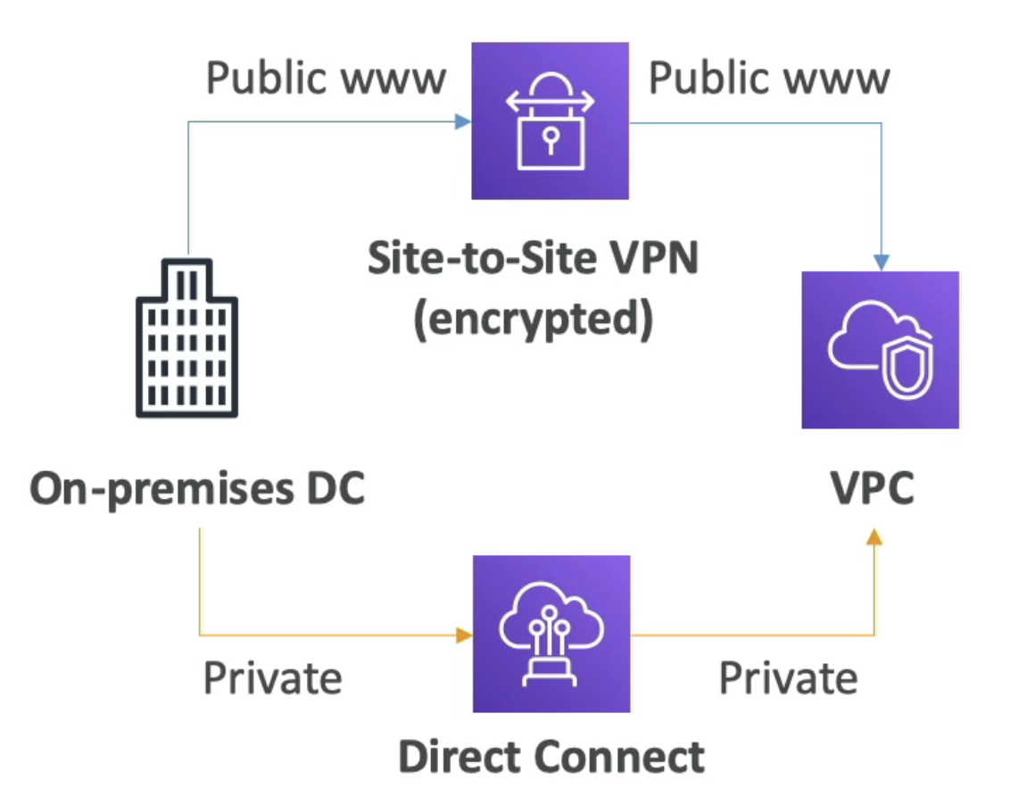 - VPN과 같은 목적을 가지지만 물리적으로 연결된다. 이는 프라이빗 연결을 의미하며 안전하고 빠른 특징이 있다.