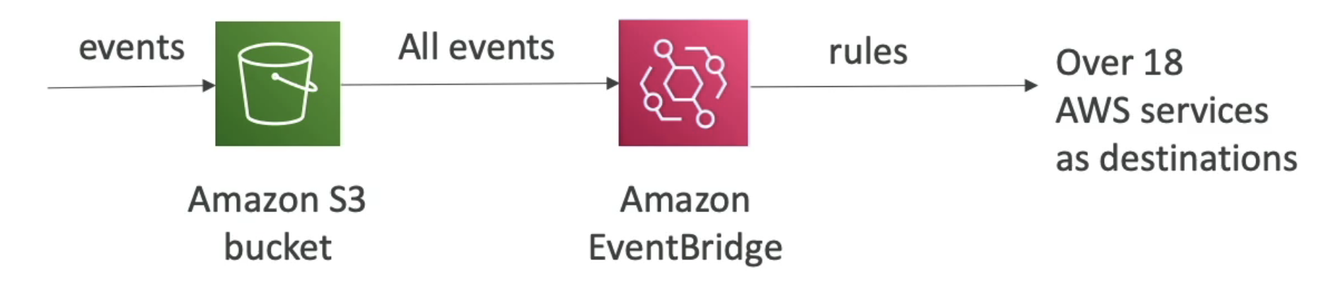 - 과정을 설명하면 이벤트는 모두 S3 버킷으로 가서 Amazon EventBridge로 간다.