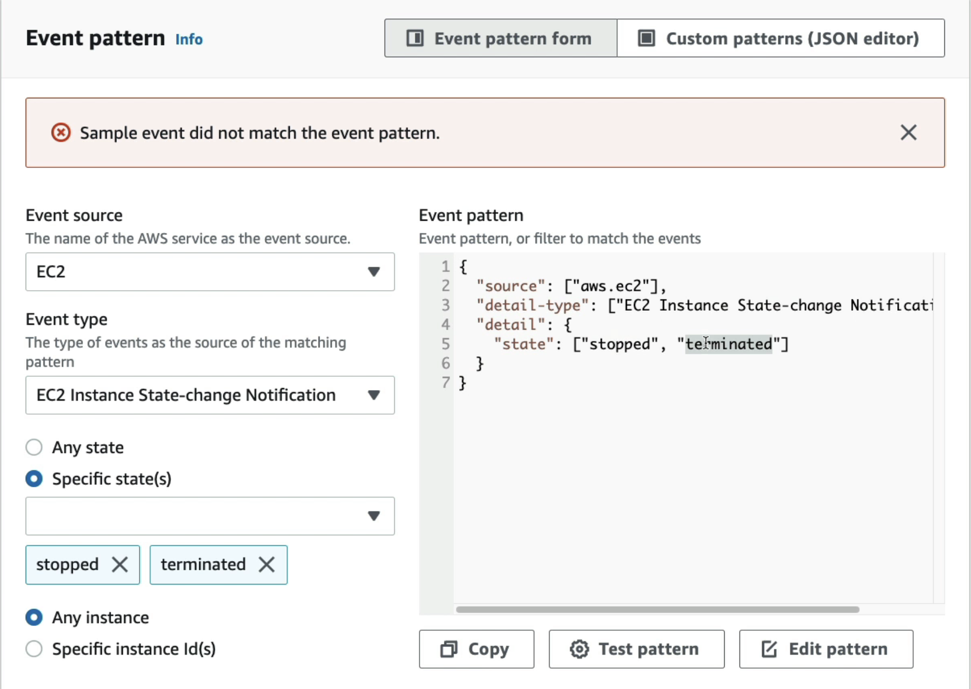 2. Event Pattern | 어떤 작업을 수행하는 서비스에 반응하는 이벤트 규칙을 생성한다.
