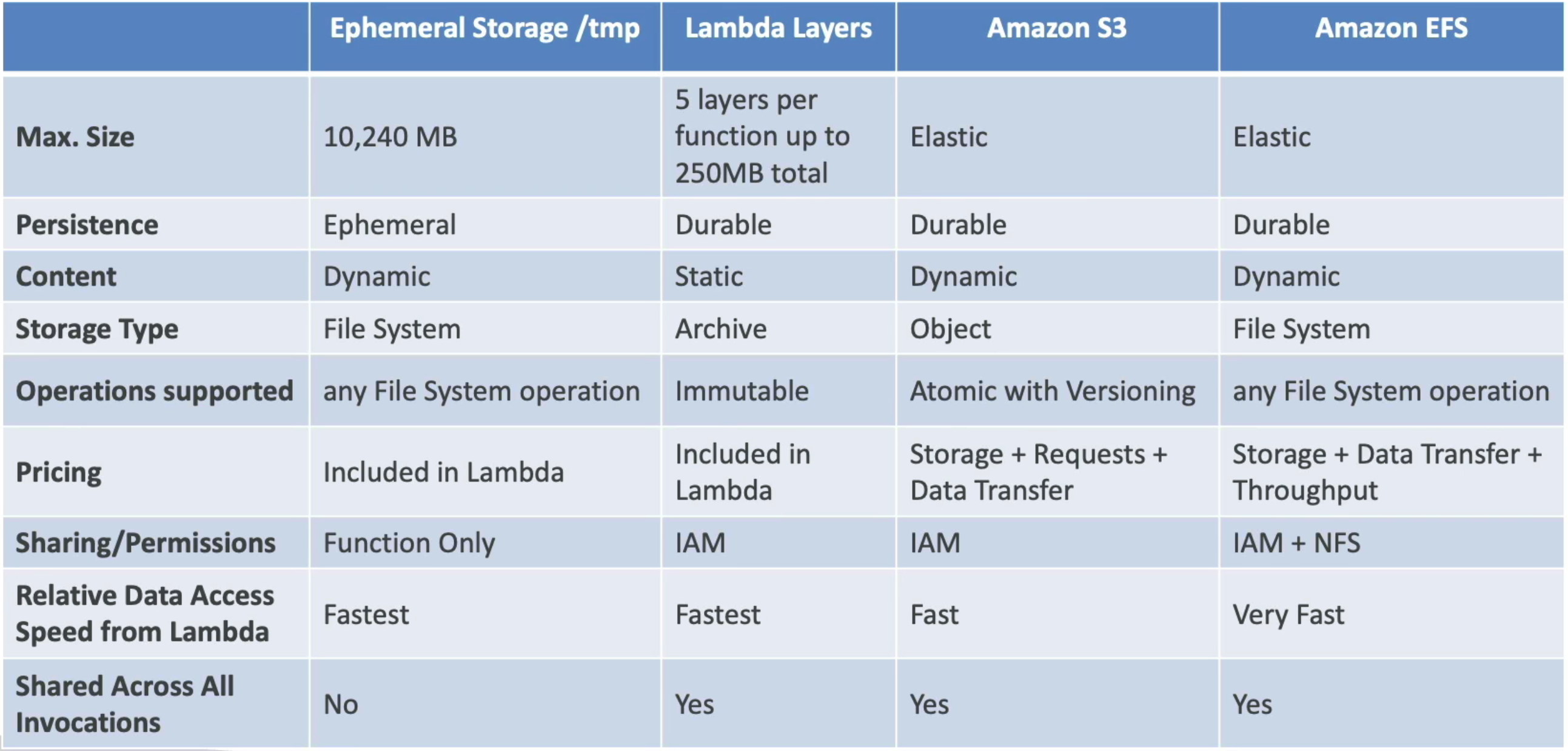 아래는 람다에 대한 여러 스토리지 옵션들이다.