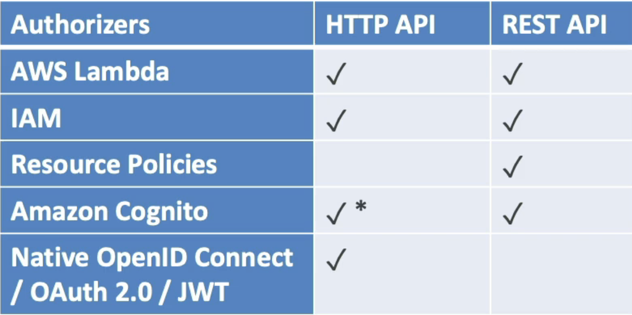 - REST API는 리소스 정책을 지원하지만 HTTP API는 그렇지 않다.