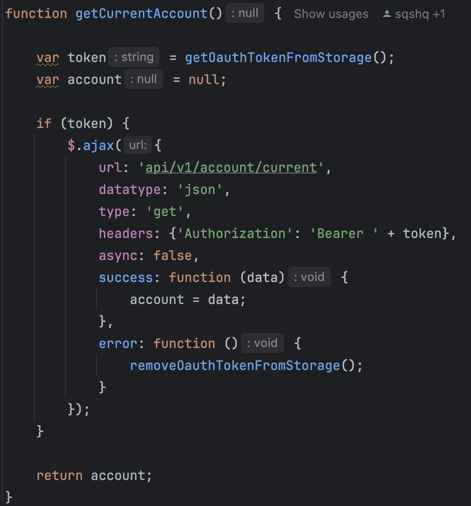 이때 정보를 가져오는 함수가 initAccount인데, getCurrentAccount()에서 요청한 ajax에 대한 값을 토대로 객체들을 나타내는 것이다.