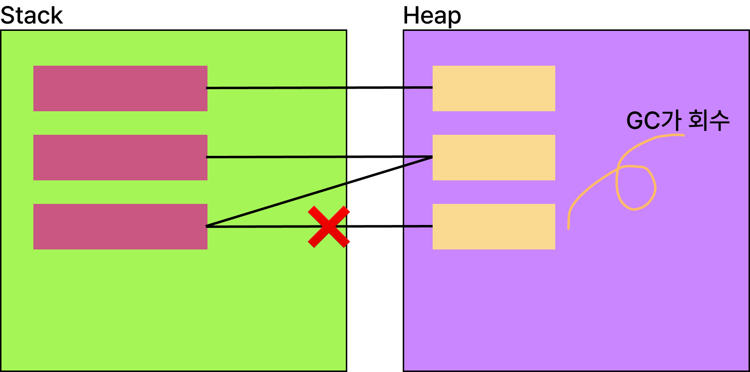 이후 메서드가 결과값을 반환하며 person이라는 변수가 사라지면 힙 영역의 new String("My name is Brian")은 아무도 참조하지 않으므로 Mark되지 않을 것이고, 결국 sweep 동작에 회수 될 수 있다.