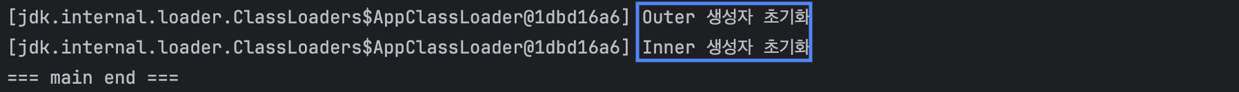 Outer 클래스의 내부 클래스인 Inner 클래스를 생성할 때는 Outer과 Inner 클래스 모두 로드가 된다.