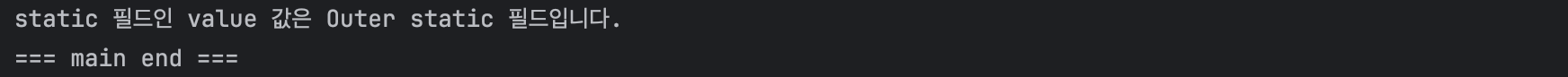 System.out.println("static 필드인 value 값은 " + Outer.value + "입니다.");