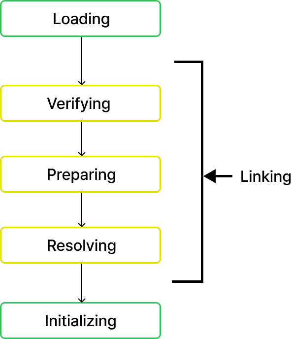 - Verifying - JVM 명세에 명시된 대로 작성되어 있는지 검증한다.