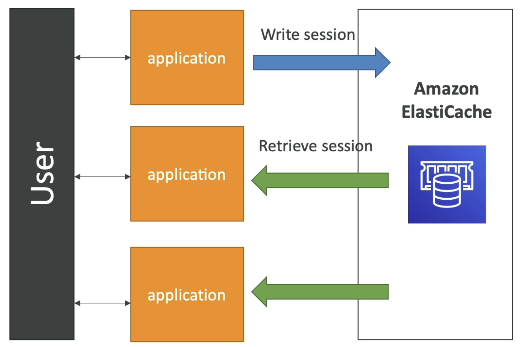 - 애플리케이션은 ElastiCache에 세션 데이터를 저장한다.