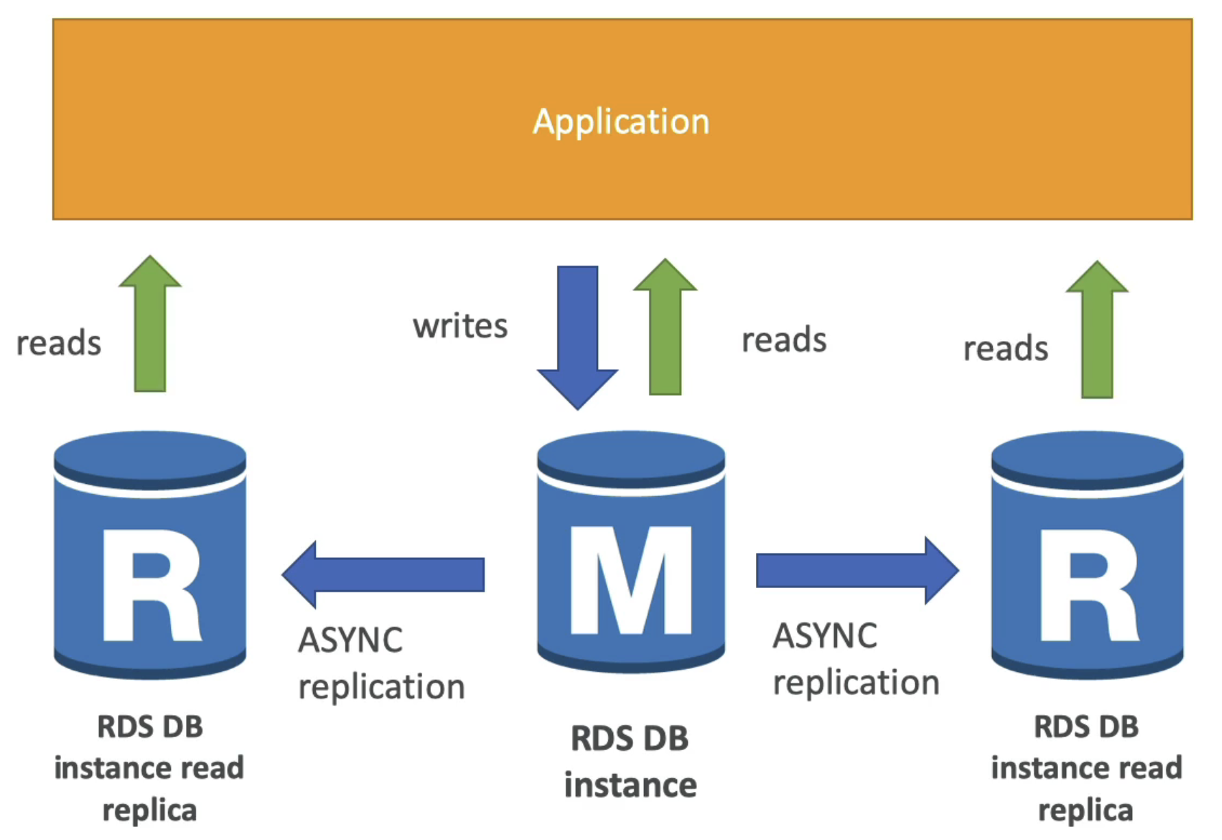 - 주 RDS와 두 읽기 전용 복제본 사이에 비동기식 복제가 발생한다. 비동기식은 읽기가 일관적으로 유지됨을 의미한다.